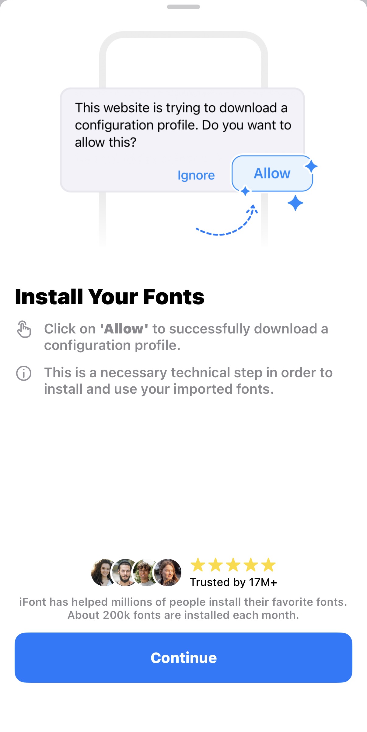 • iFont에서 폰트 파일 불러오기 → 설치 진행