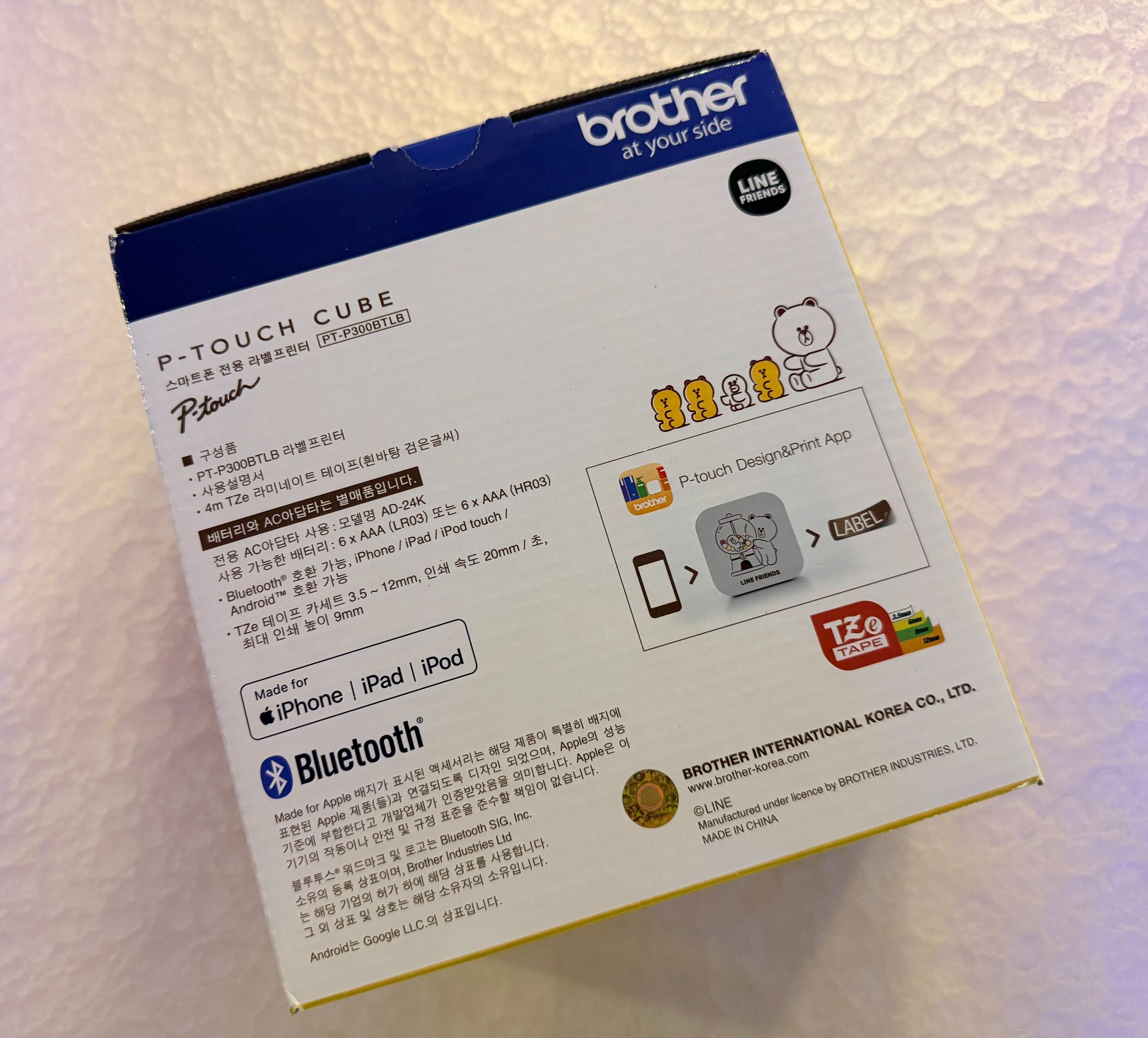 브라더 한국 총판 PT-P300BTLB 라인프렌즈 블루투스 라벨 프린터 정품 샘플 테이프 증정 브라더라벨