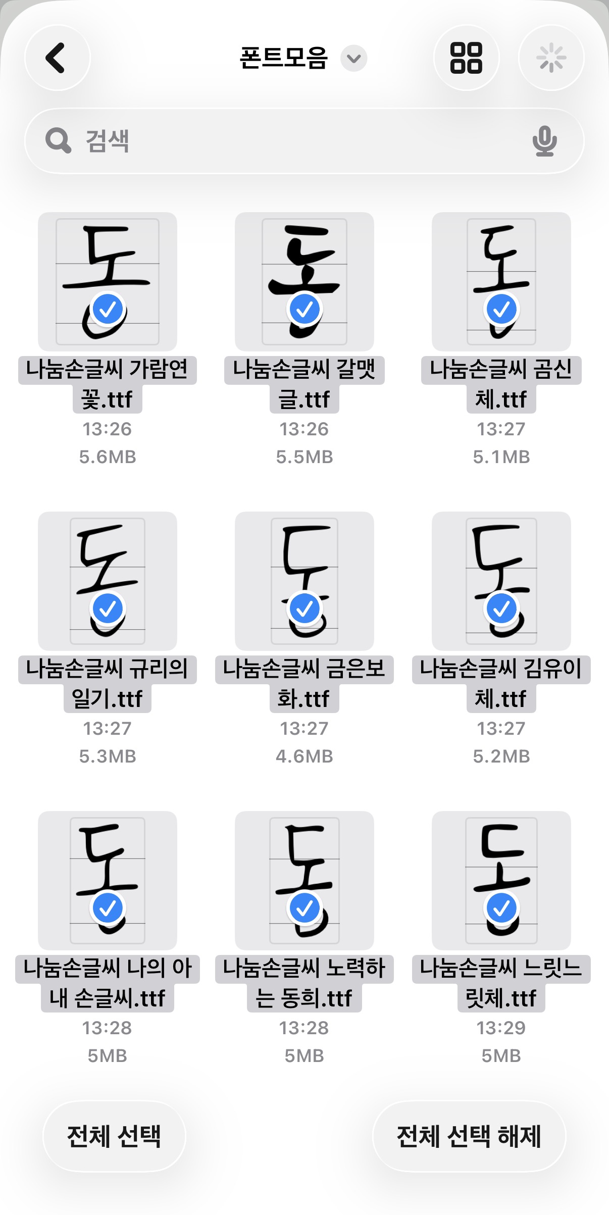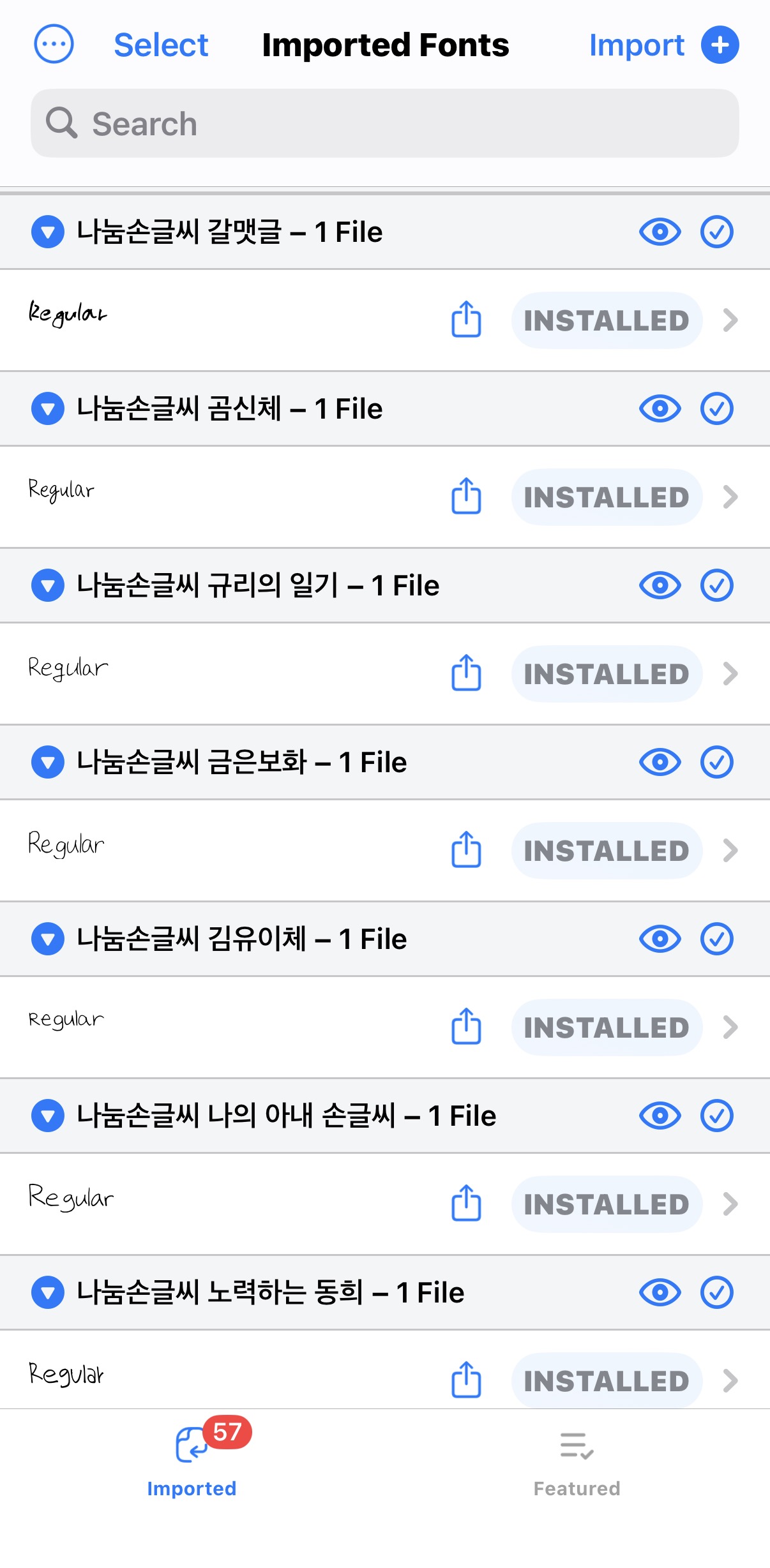 핸드폰 내에 폰트파일을 다운받아서 iFont 어플 내에 Import 해준다.